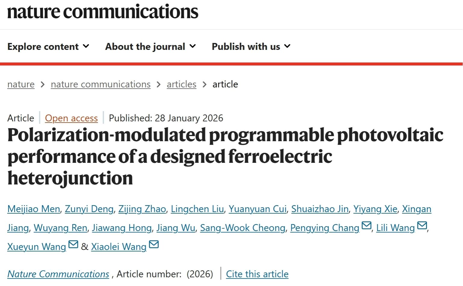 【物光|科研】铁电光伏取得新进展物光公司研究成果再登Nature子刊近日,365best体育官网登录师生在铁电极化调控可编程光伏性能...