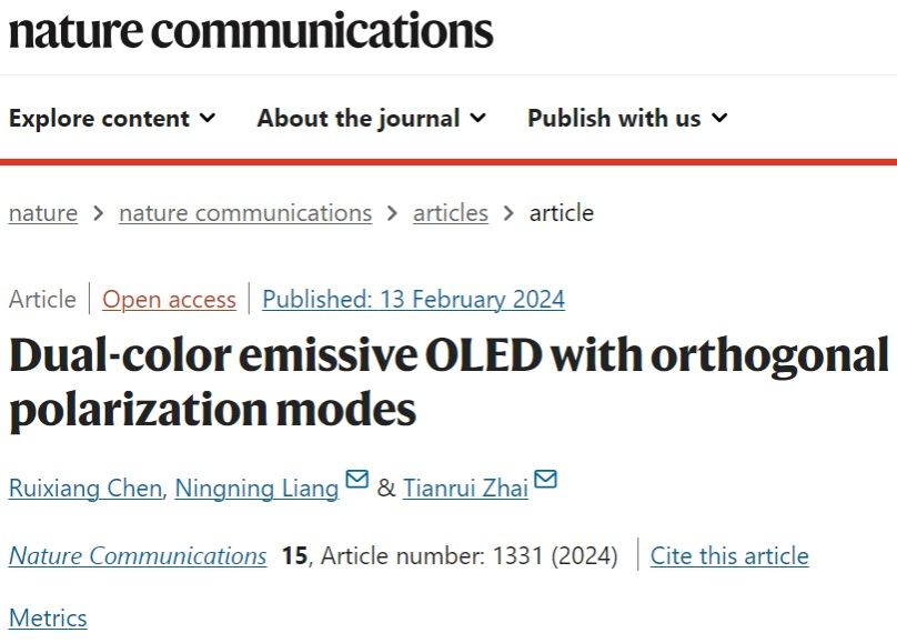 【物光 | 科研】365best体育官网登录师生在Nature Communications发表双色正交偏振发光OLED研究成果