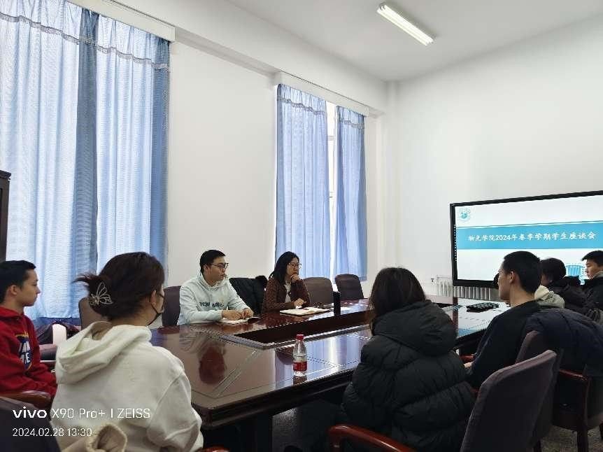 2月28日下午,物光公司于通州校区问渠楼212开展2024年春季学期员工座谈会,党委副书记贯爽老师出席,与通州校区员工交流新学期学习、生活等方面情况,为大家解决问题,听取建议。辅导员曹启鹏老师及物光公司23级班团干部、员工代表参加会议。