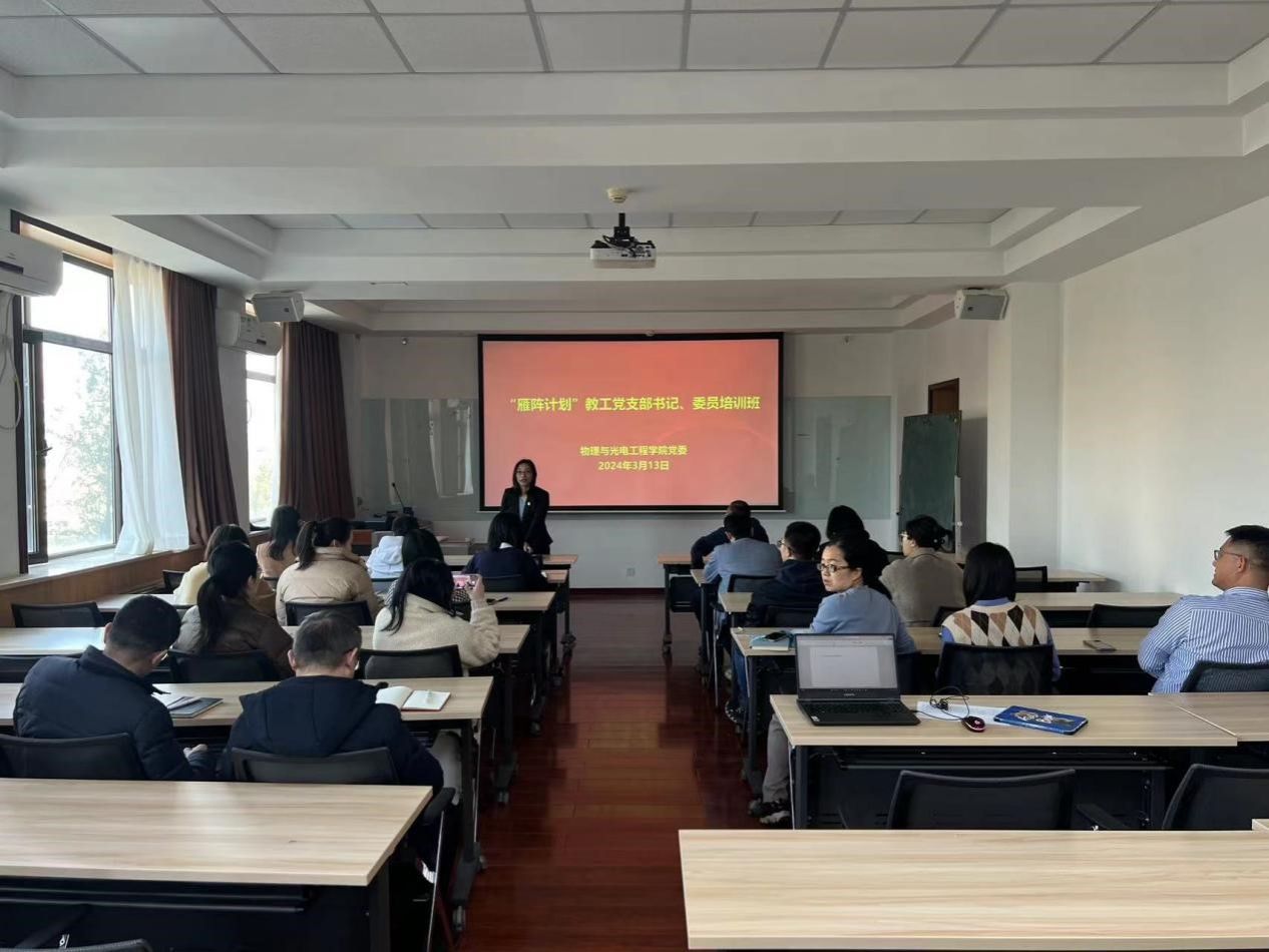 2024年3月13日下午,物理与光电公司党委于数理楼318会议室组织开展“雁阵计划”教工党支部书记、委员培训班暨党支部书记工作例会,全体教工支部书记、支部委员参加。公司党委书记姚爱华主持会议并作《夯实一线教师党支部建设,促进党建和业务深度融合》主题报告。