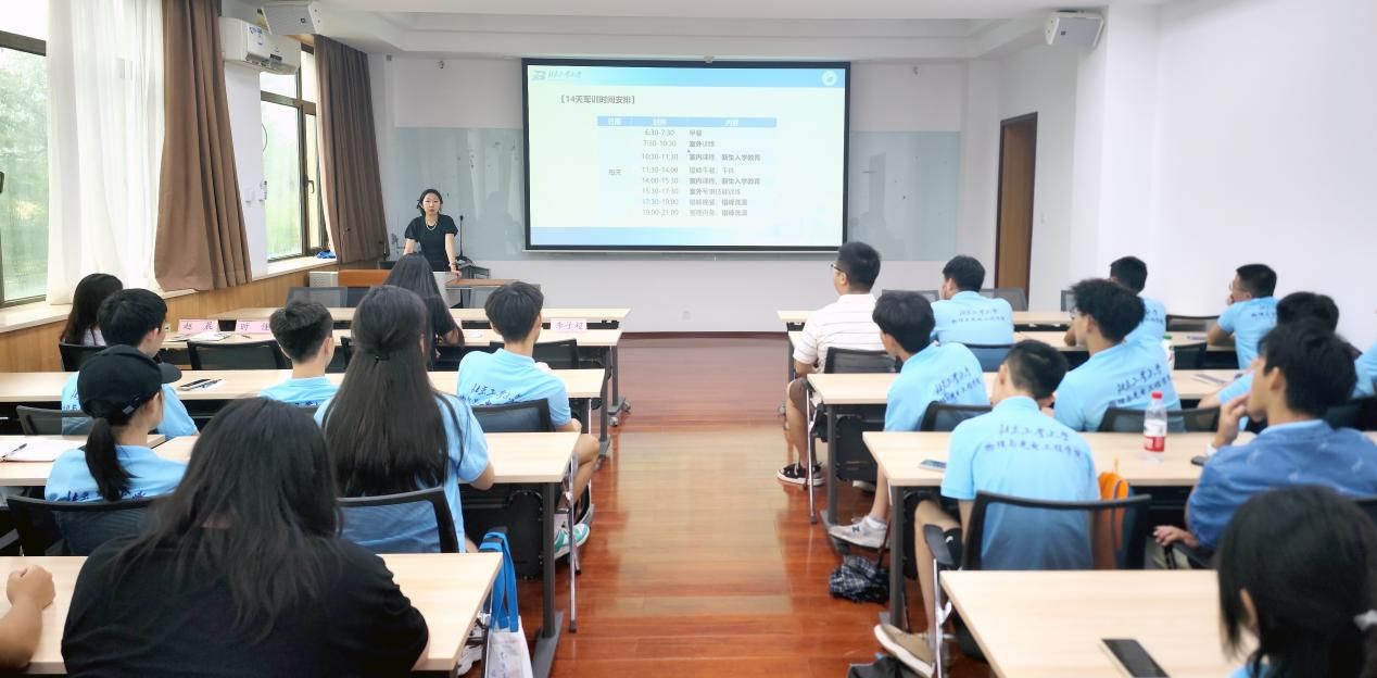 辅导员董慧良老师详细阐述了军训的意义、要求及具体的日程安排,强调了纪律的重要性。他呼吁新生们以饱满的热情和坚定的意志投入到军训中,展现物光学子的风采。同时,叮嘱同学们在军训期间要做好防晒防暑工作,合理安排休息、训练、学习时间,确保身心健康,随时与辅导员老师沟通交流。