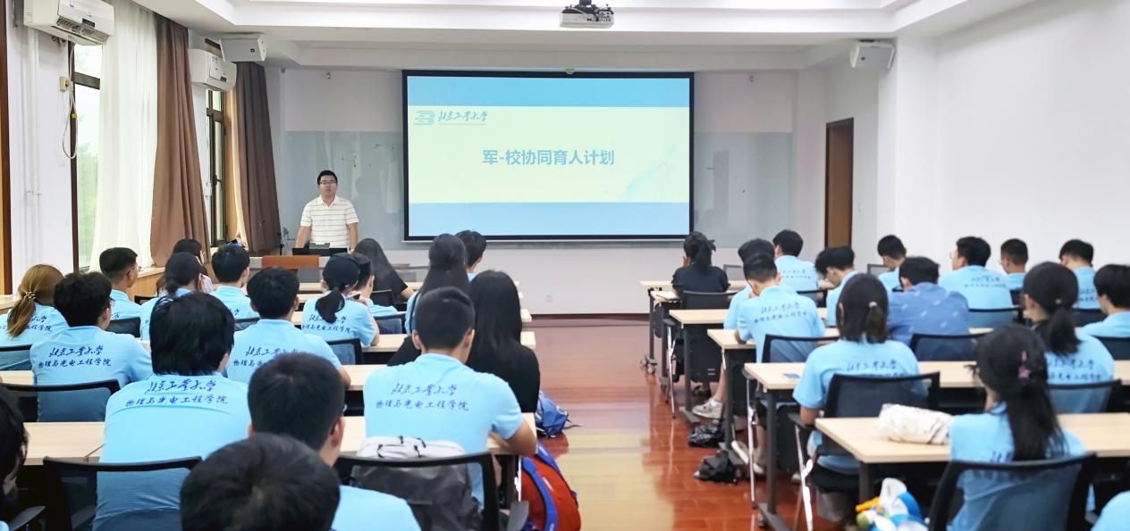 辅导员李子超老师对军校协同育人计划进行了全面介绍。他强调该计划为员工提供的宝贵机会和广阔平台,鼓励有志于投身国防事业,并希望得到综合素质全面提升的员工积极报名参与。李老师的讲解生动具体,让新生们对军校协同育人计划有了更加深入的了解和认识。