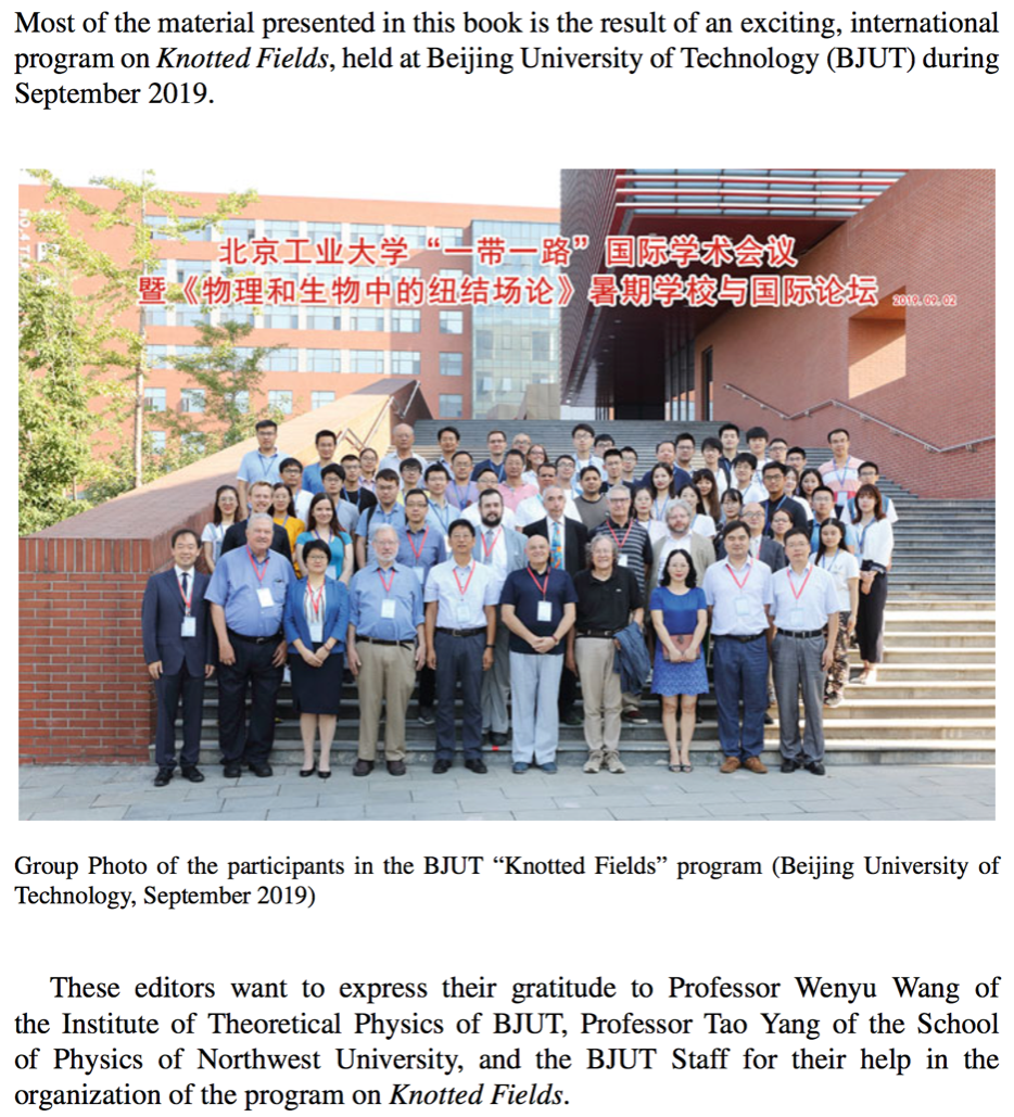 北工大数理学科与北京-都柏林国际公司于2019年9月2日至11日联合举办了《物理和生物中的纽结场论》暑期·公司与国际论坛,共有来自12个国家的学者、员工约80人参加,其中外籍20人(英、美、加、意、俄、捷克、波兰等)。授课专家学术水准高,阵容强大。此次出版著作各章作者均为该国际论坛的授课专家,书中内容涵盖了论坛讲义及2019年至今相关领域最新研究进展。本书的撰写工作得到了国家和北京市自然科学基金、北京市科委以及·公司国际交流合作处中波大学联盟-2019年内涵发展定额和教务处课程建设等项目资助。