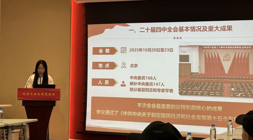 学习贯彻党的二十届四中全会精神是当前的一项重要政治任务,对于提升党员的政治素养、凝聚奋进力量具有深远意义。活动现场,信息光电子员工第二党支部员工代表曹进聚焦党的二十届四中全会纲领精神进行领学,并立足专业领域,将理论精髓与科研实践相贯通,分享了自身的学习体会。